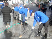 大通商店街主催行事で、新宿駅前広場から新宿通りに沿って新宿2丁目交差点までの清掃しました。