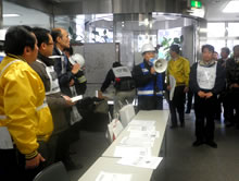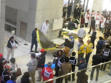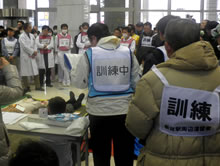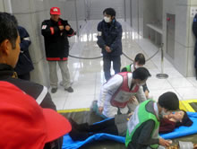 東口現地本部立ち上げ及び運営、情報収集伝達訓練、負傷者対応訓練を実施しました。